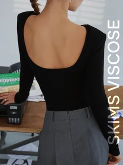 Лонгслив базовый облегающий скимс кофта с вырезом