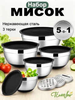 Набор мисок с крышками для кухни из нержавеющей стали