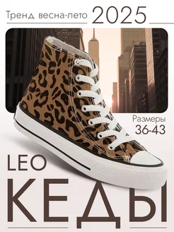 Кеды леопардовые дышащие текстильные на платформе