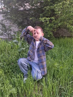 рубашка клетка теплая детская