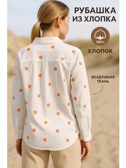 Хлопковая женская рубашка с нежной вышивкой цветов