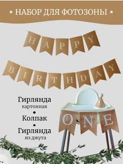 Гирлянда растяжка с днем рождения ONE колпак на годик