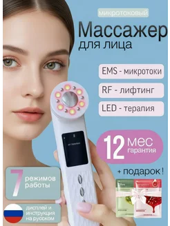 Микротоковый массажер для лица и шеи RF лифтинг EMS LED