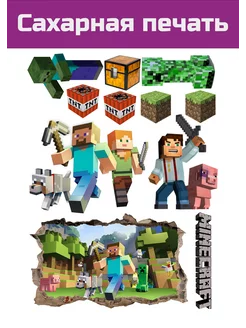 Сахарная картинка Minecraft на торт