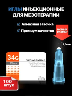 Иглы медицинские инъекционные 34G 1,5mm (100шт)