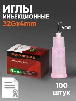 Иглы медицинские инъекционные 32G 4mm (100шт)