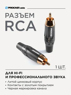 RCA разъем под пайку, штекер, черный, 1 шт