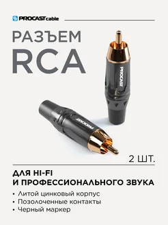 RCA разъем под пайку, штекер, черный, 2 шт