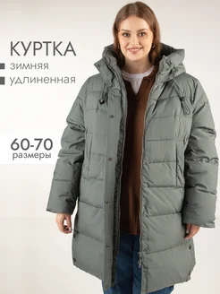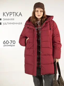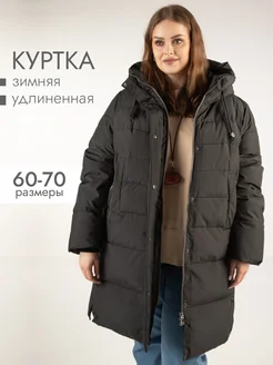 Куртка зимняя больших размеров удлиненная с капюшоном