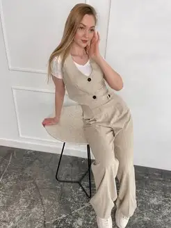 Классический костюм с жилетом и брюками палаццо