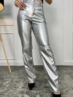 Брюки металик экокожа серебро
