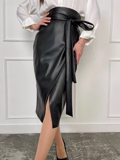 Юбка на запах миди кожа