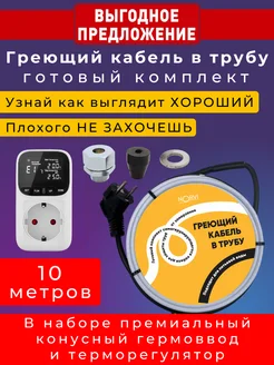 Саморегулирующийся греющий кабель с сальником 10 метров