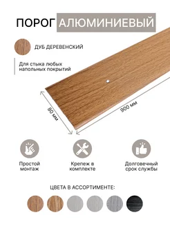 Широкий порог для пола 80 х 900 мм алюминиевый