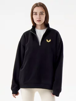Свитшот без начеса на молнии оверсайз с воротником полузамок