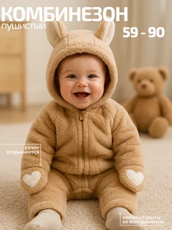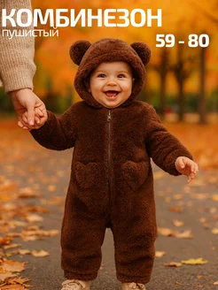 Комбинезон пушистый плюшевый для новорожденных Мишка