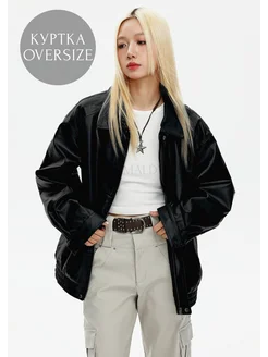 Бомбер кожаный куртка оверсайз