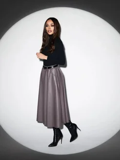 Юбка миди кожаная с карманами без начеса