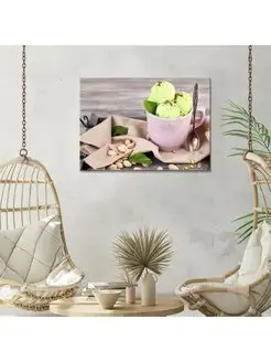 Картина на холсте Фисташковое мороженое в чашке 60х80