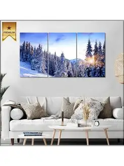 Картина модульная на холсте зимний рассвет в лесу 150х80