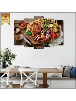 Картина модульная на холсте Мясо и овощи гриль 100х70