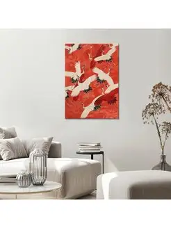 Картина на холсте Журавли на красном кимоно 60х80