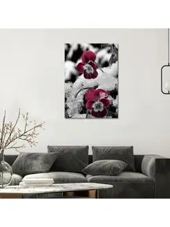 Картина на холсте Красивые фиалки в снегу 40х60