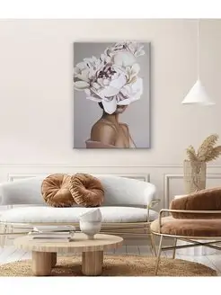 Картина на холсте Девушка в розовом с цветком на голове 40х6