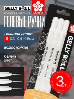 Белые гелевые ручки набор 3 шт 0.3мм, 0.4мм, 0.5мм