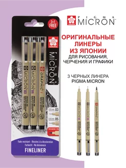 Набор линеров Pigma 3 шт. 0,35мм, 0,45мм, Graphic 1мм