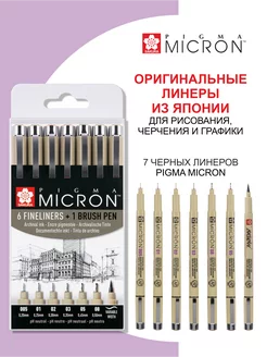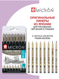 Набор линеров 8 шт. Pigma Micron 7 шт. + 1 шт. ручка Brush