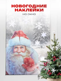 Новогодние наклейки на окна двусторонние Дед Мороз
