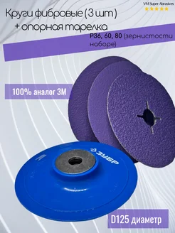 Круг фибровый P36,Р60,Р80 (3шт) + тарелка опорная 125хМ14