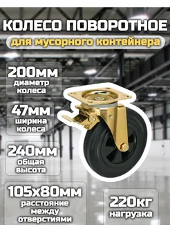 Колесо поворотное 200мм с тормозом (мусорного контейнера)