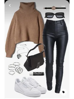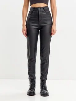 Брюки кожаные скинни с высокой посадкой