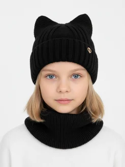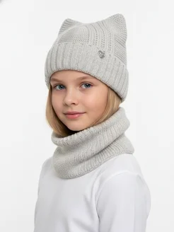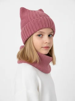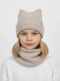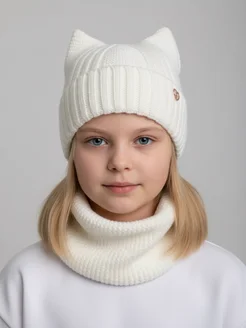 Шапка зимняя вязаная с ушками снуд шарф бини детская