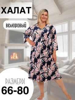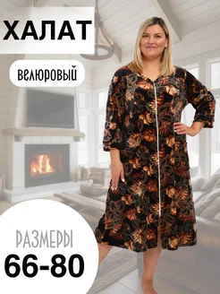 Халат женский больших размеров на молнии велюровый
