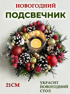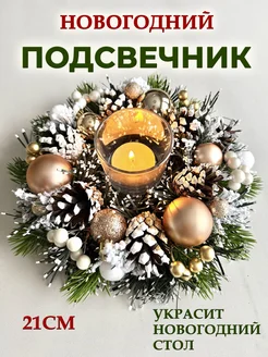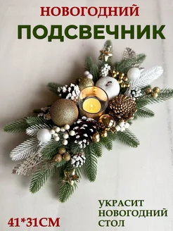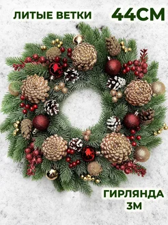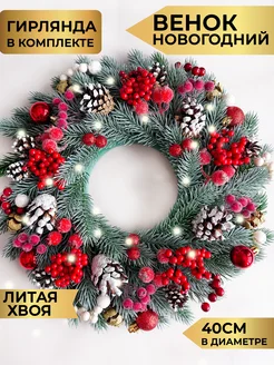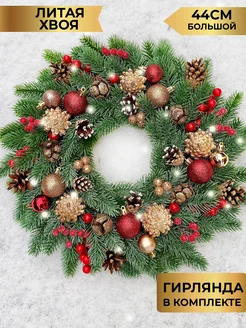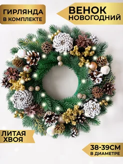 Венок Новогодний декор с гирляндой из литой хвои 39см