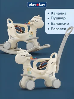Лошадка качалка с ручкой 4 в 1 беговел, балансир и пушкар