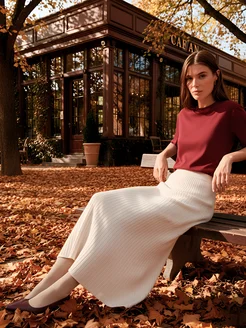 Юбка вязаная лапша миди Молочная
