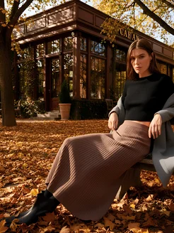 Юбка вязаная лапша миди Коричневая