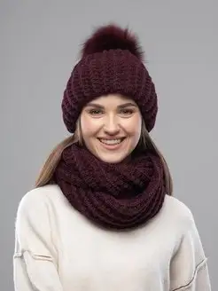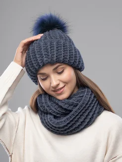 Шапка зимняя вязаная с помпоном и снуд на осень