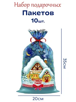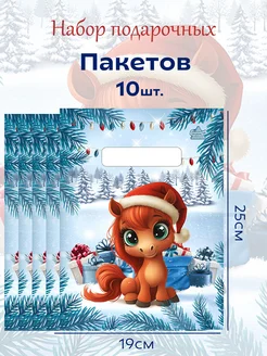 Подарочные новогодние пакеты (19х25см) 30мкр 10шт