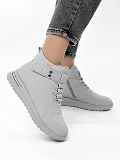 Ботинки женские зимние на молнии и шнуровке серые