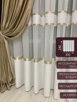 Тюль 300*240 длинный белый лен бамбук в гостиную