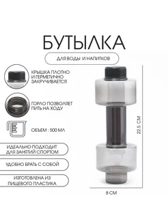 Бутылка для воды "Гантель", 500 мл, 22.5 х 8 см, чёрный