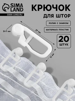 3 уп. Крючок для штор, ролик с замком, 2,7 х 1,1 см, 20 шт