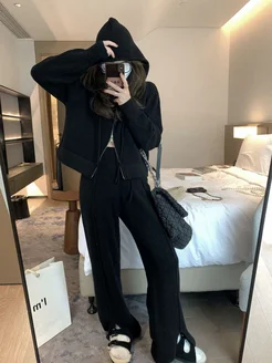 Костюм теплый вязаный трикотажный на молнии с брюками y2k
