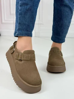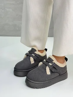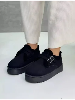 Угги мини зимние на толстой подошве полусапожки с мехом