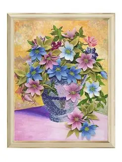 Мозаика из пайеток на холсте Клематисы МХ-07вм